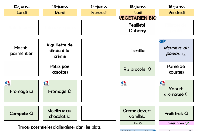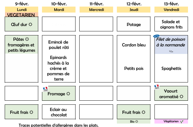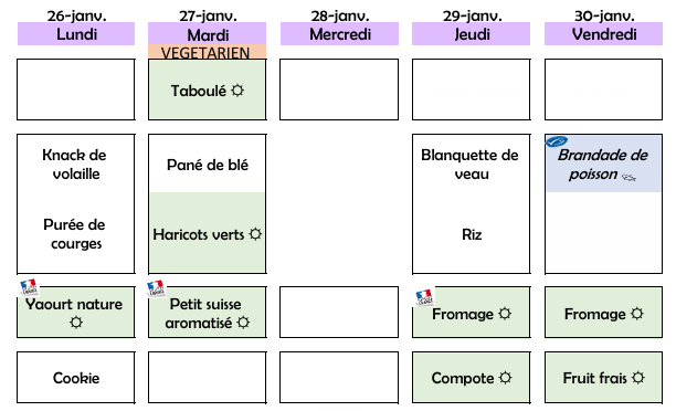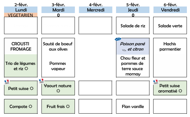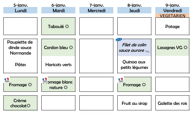 Menus scolaires 05 janvier au 20 février 2026
